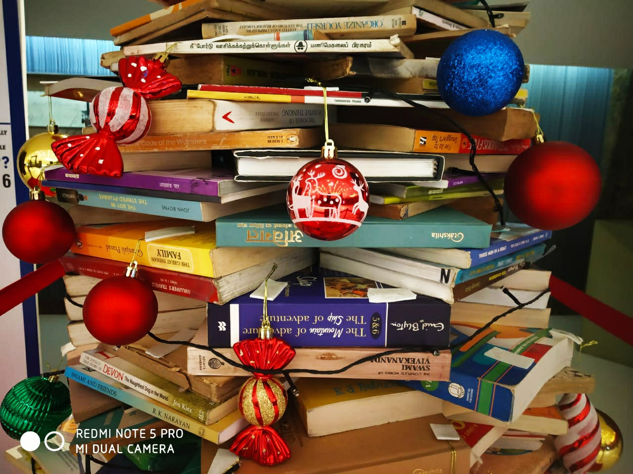 Nearly 25,000 books where used to construct the Christmas trees and later after the Birth of New Year, the book were provided to the needy children in Coimbatore through orphanages and government controlled schools.